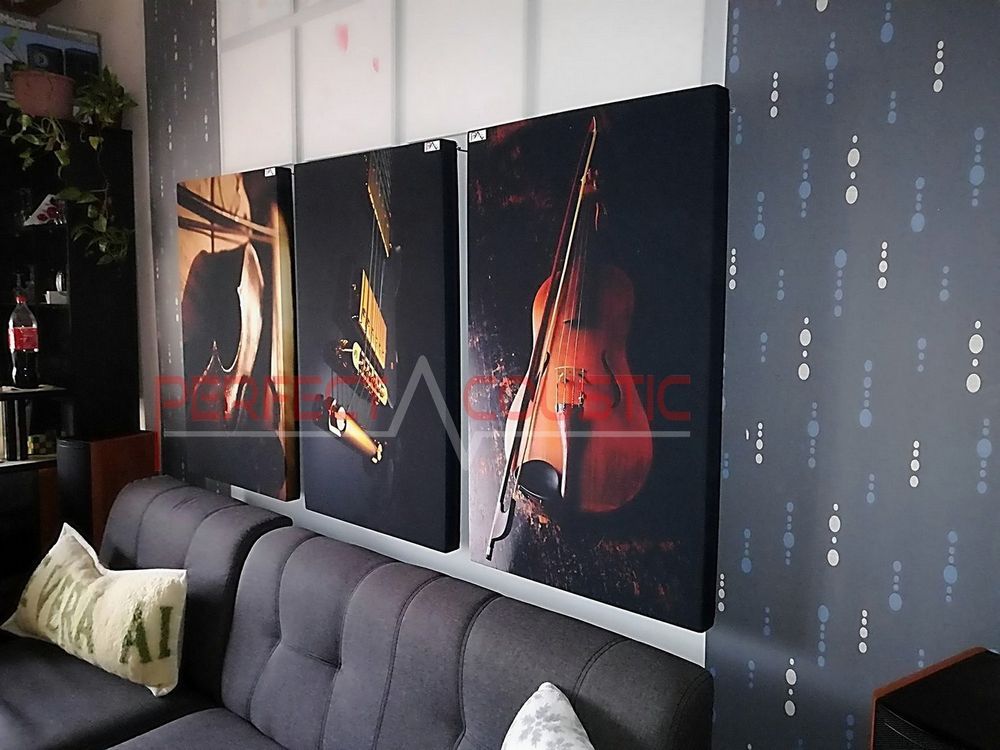 | Membranpaneler | 110–130 mm | • Läder: absorberar 40–600 Hz • Trä: absorberar 40–200 Hz • Kan tillverkas i specialmått | • Liten effekt i högre frekvenser • Tjocka, passar inte alla interiörer |